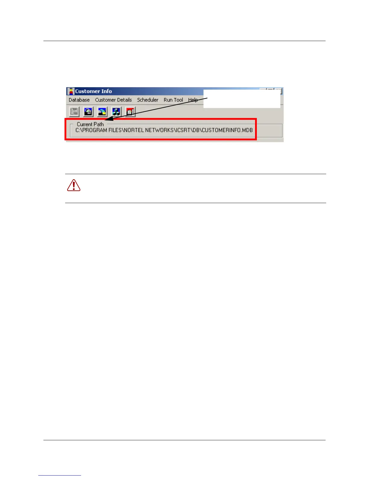 Warning: Do not delete the default database file Nortel Networks/ICSRT/db/