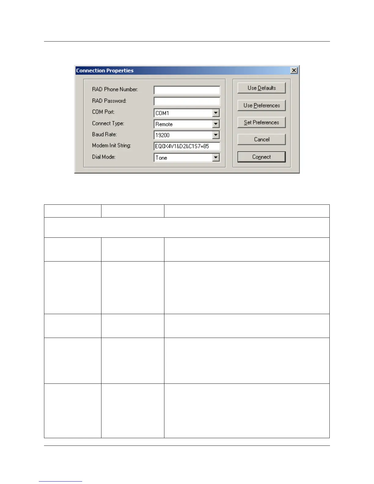 Table 2 Connection Properties fields