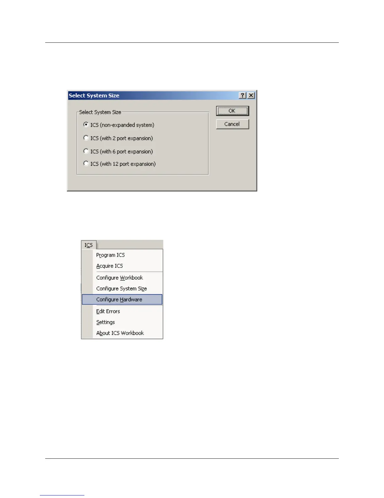 9 Under the ICS menu, select Configure Hardware