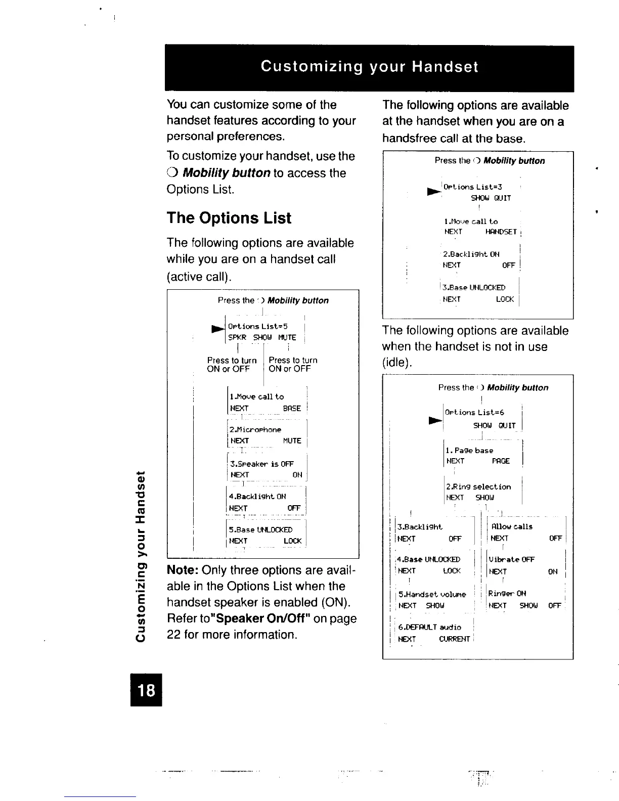 Nortel M7410 - Customizing Your Handset; Handset Options List Navigation; Customizing Handset Settings