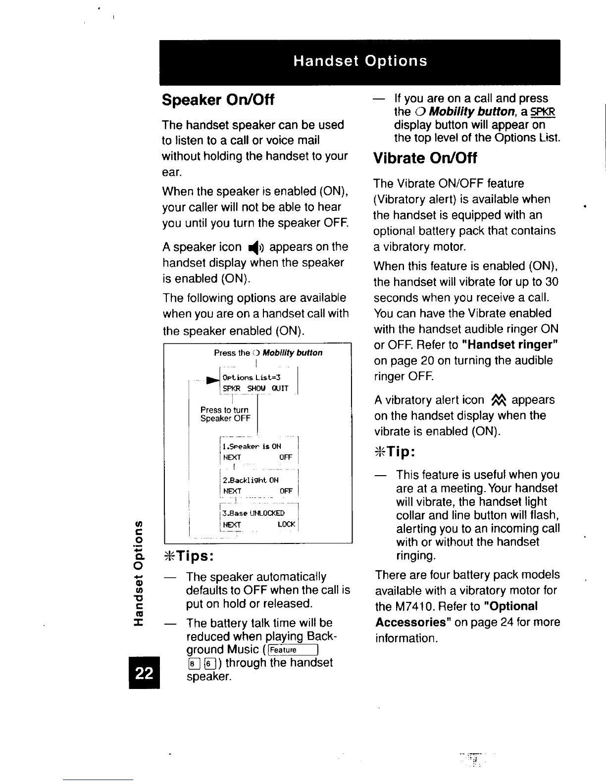 Nortel M7410 - Special Handset Features; Speakerphone Operation; Vibratory Alert System