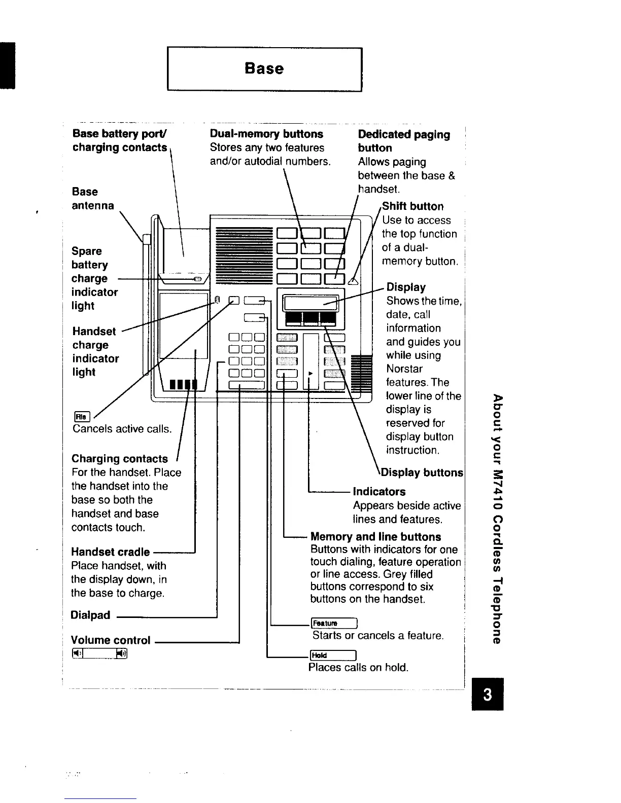 Nortel M7410 - Base Unit Overview; Base Components and Controls