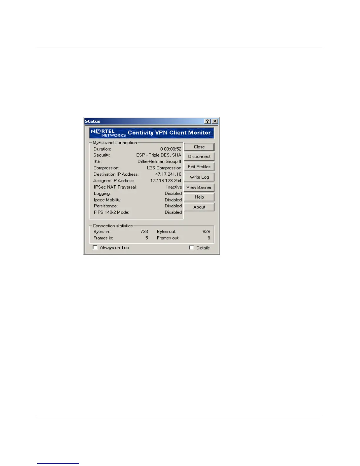 message to Contivity VPN Client. The contents of the message are displayed in a