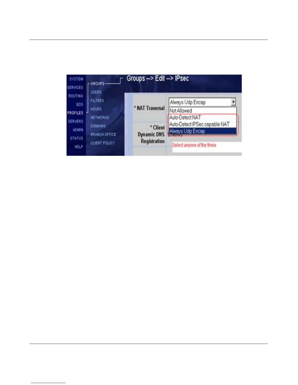 Figure 25 shows the Group > Edit > IPsec page with one NAT Traversal type