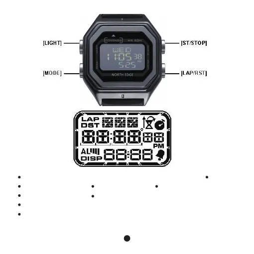Stopwatch(1/100~99hours59minutes 59.99seconds)50 groups of LAP record data and date