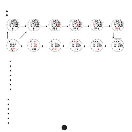 In timekeeping mode, keep pressing button B for 2s,the Second flashes, entering setting mode.