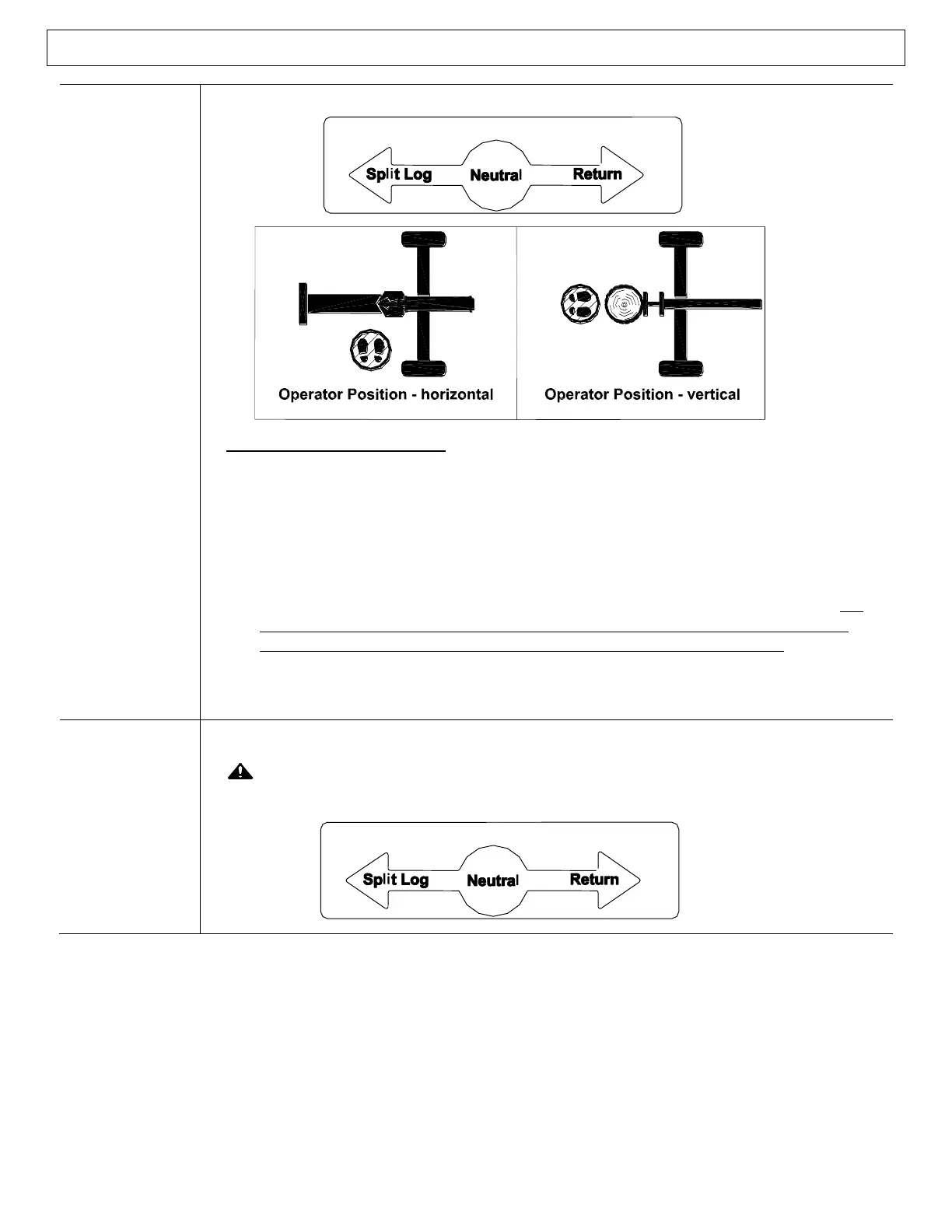 • Remove hands. Remove both hands from log before activating Split Control Lever.