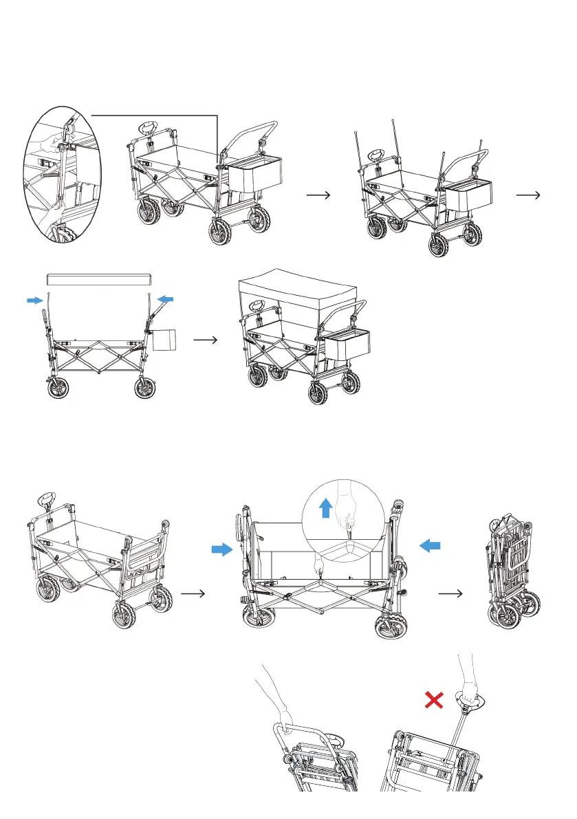 handle down. Pull the folded cart