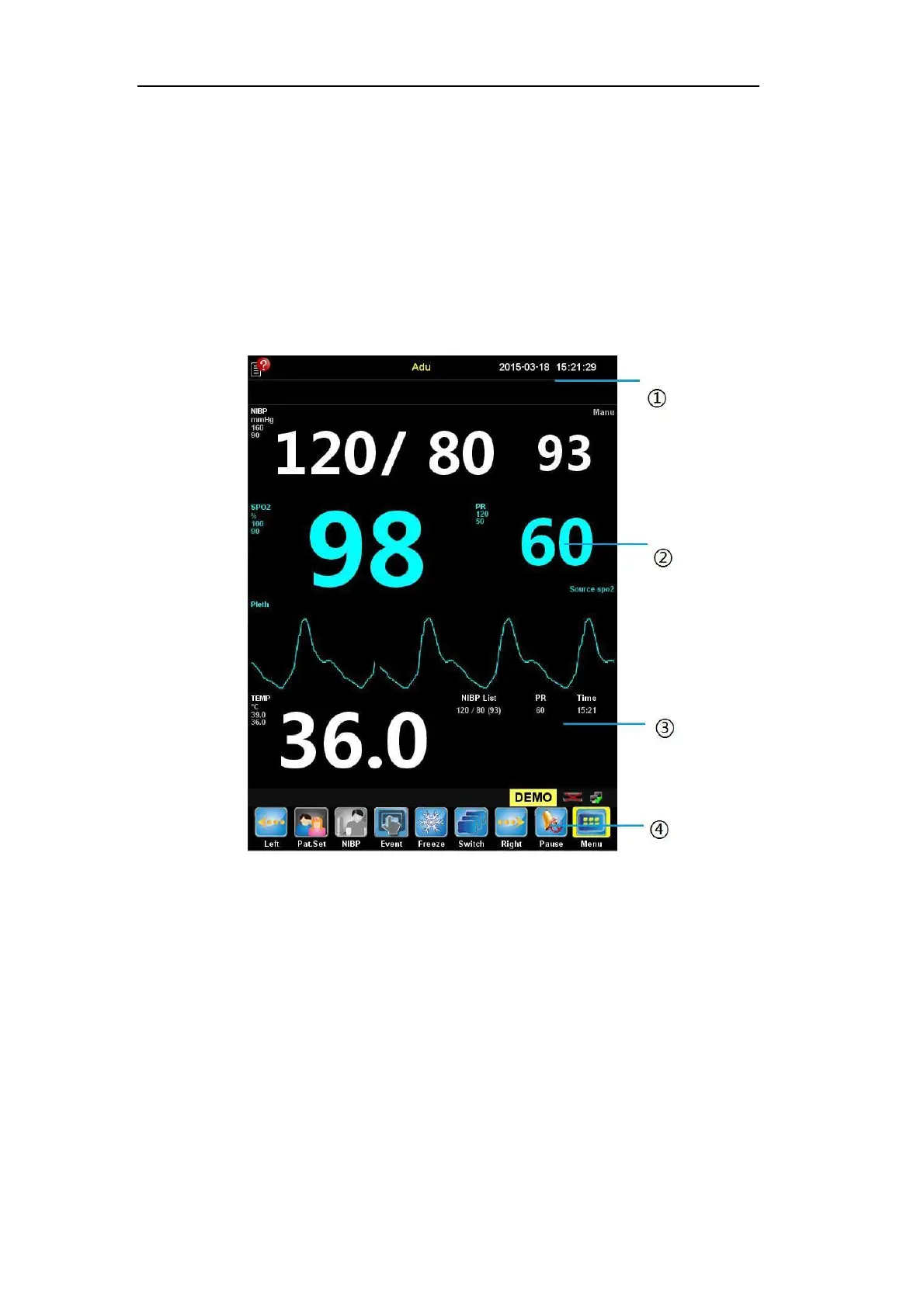 alarm information, clock, monitor status and other tips. The figure below is the standard