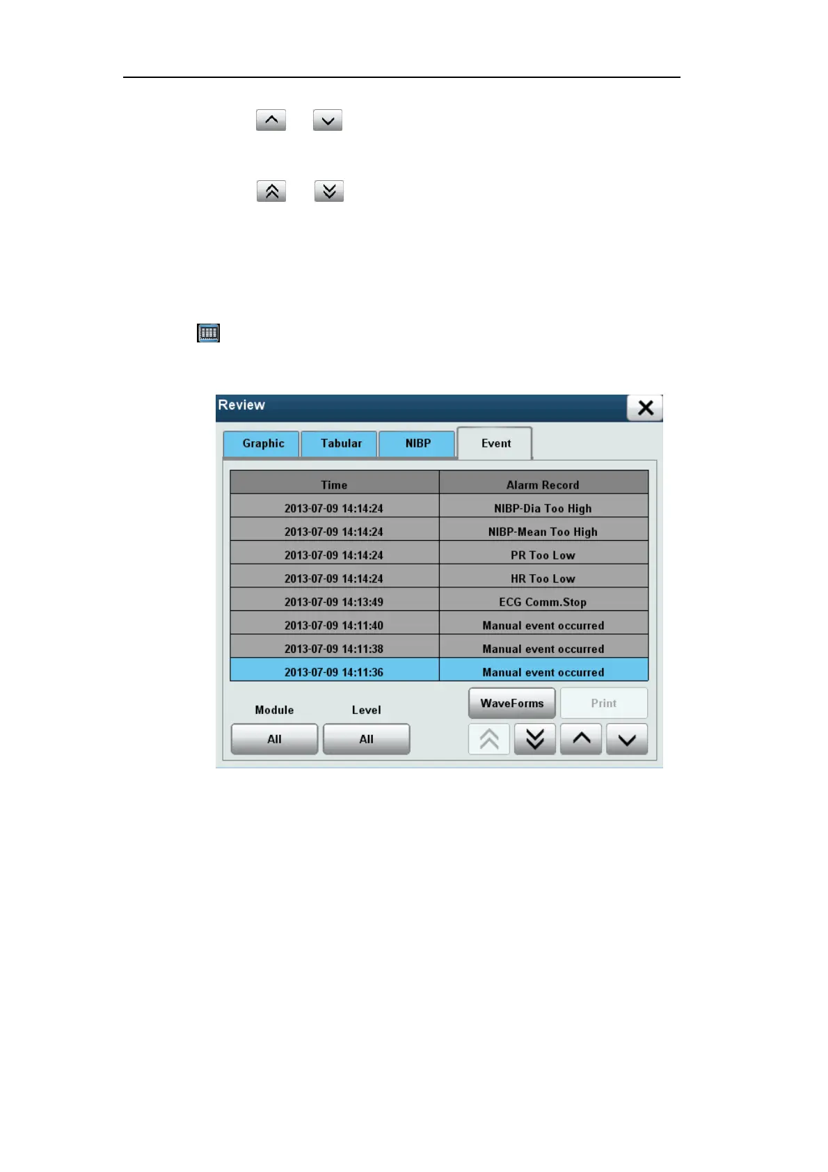 Select [Review] smart hotkey to enter [Review] menu, and select [Event] to enter the