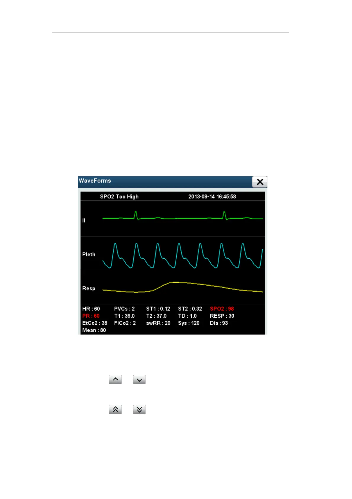 Select [Wave Forms] to view the waveform and relevant parameters when alarm occurs,