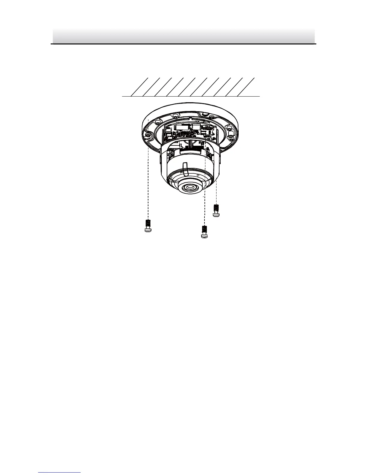3. Route the cables and fix the mounting base on the ceiling with