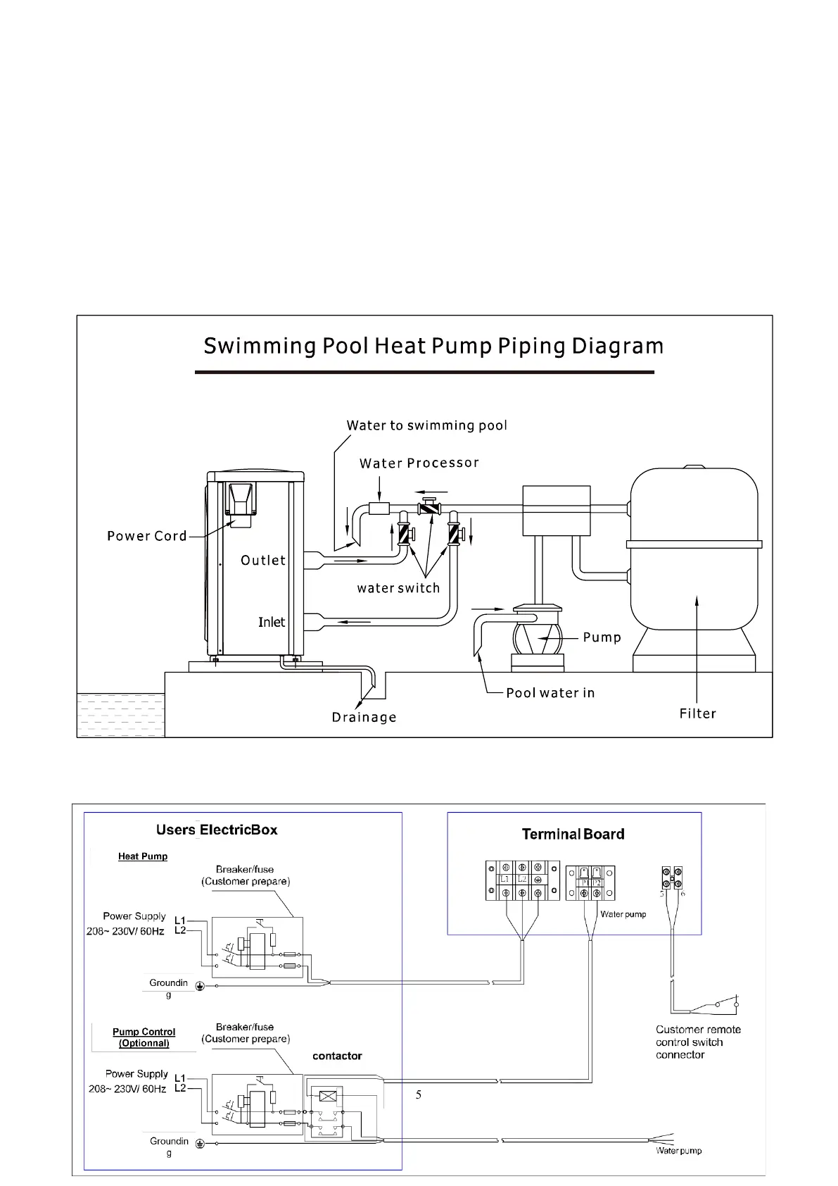 The picture above is the specification diagram of the pool heater, for technician’s