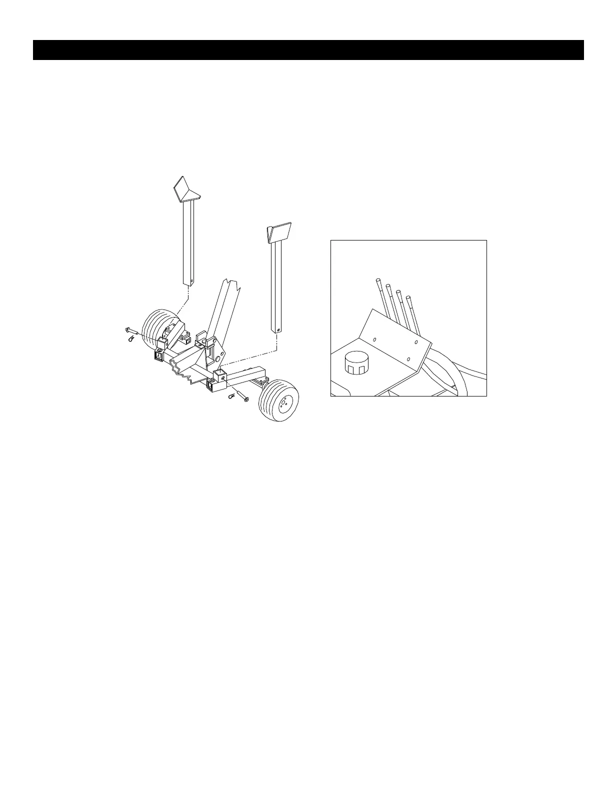 8.) Insert outriggers in the vertical brackets above the newly installed wheels. Lock the outriggers in the vertical position