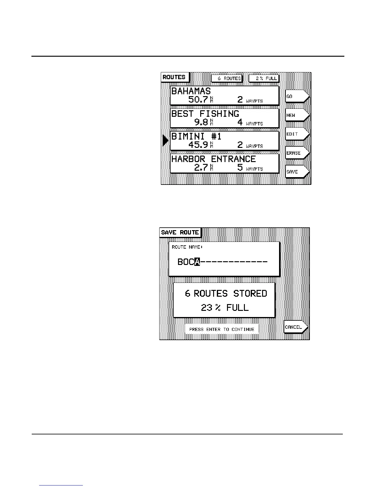 The unit displays the message SAVING TO: [ROUTE