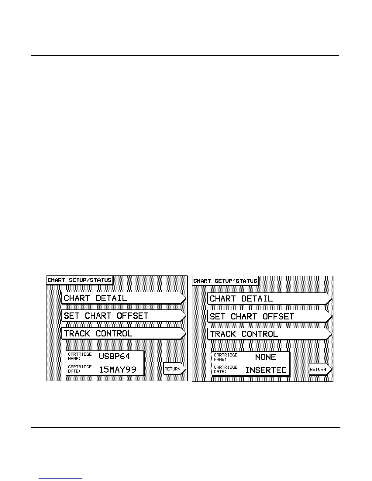 right of the CHART screen (the cartridge access door must be