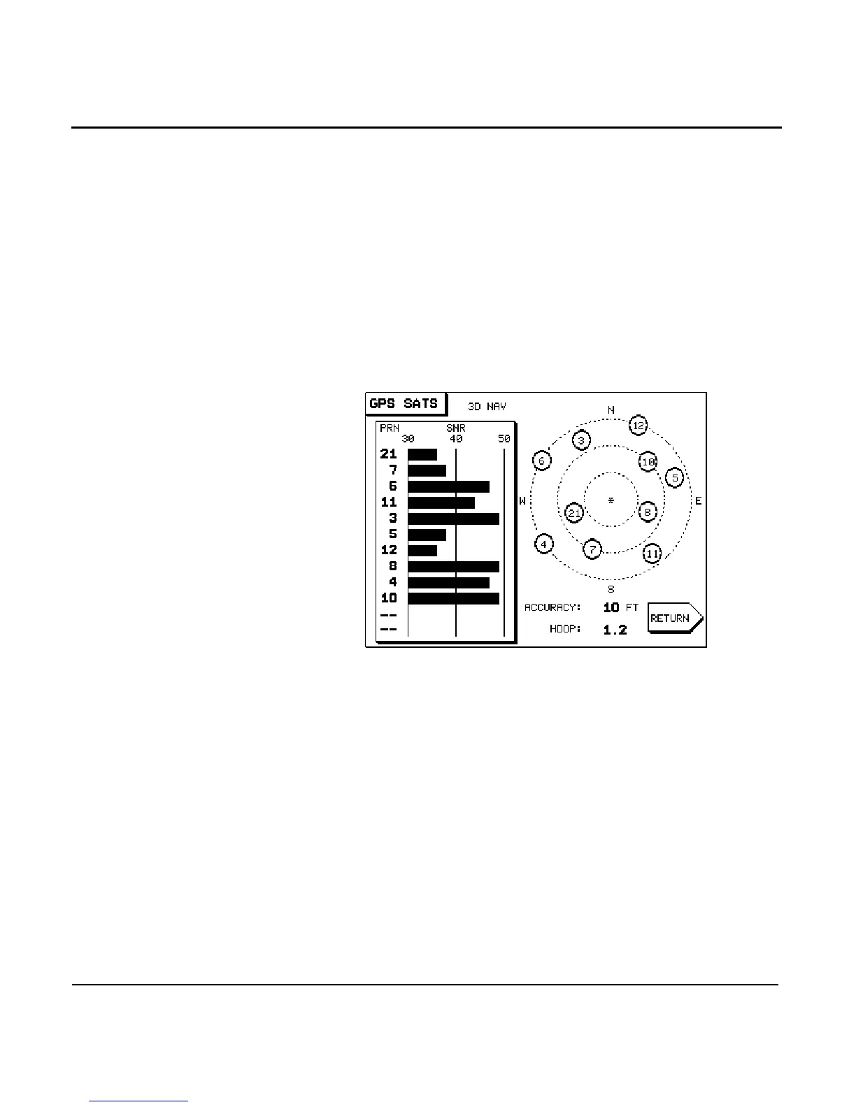 TION screen. The GPS SATS screen is displayed showing the