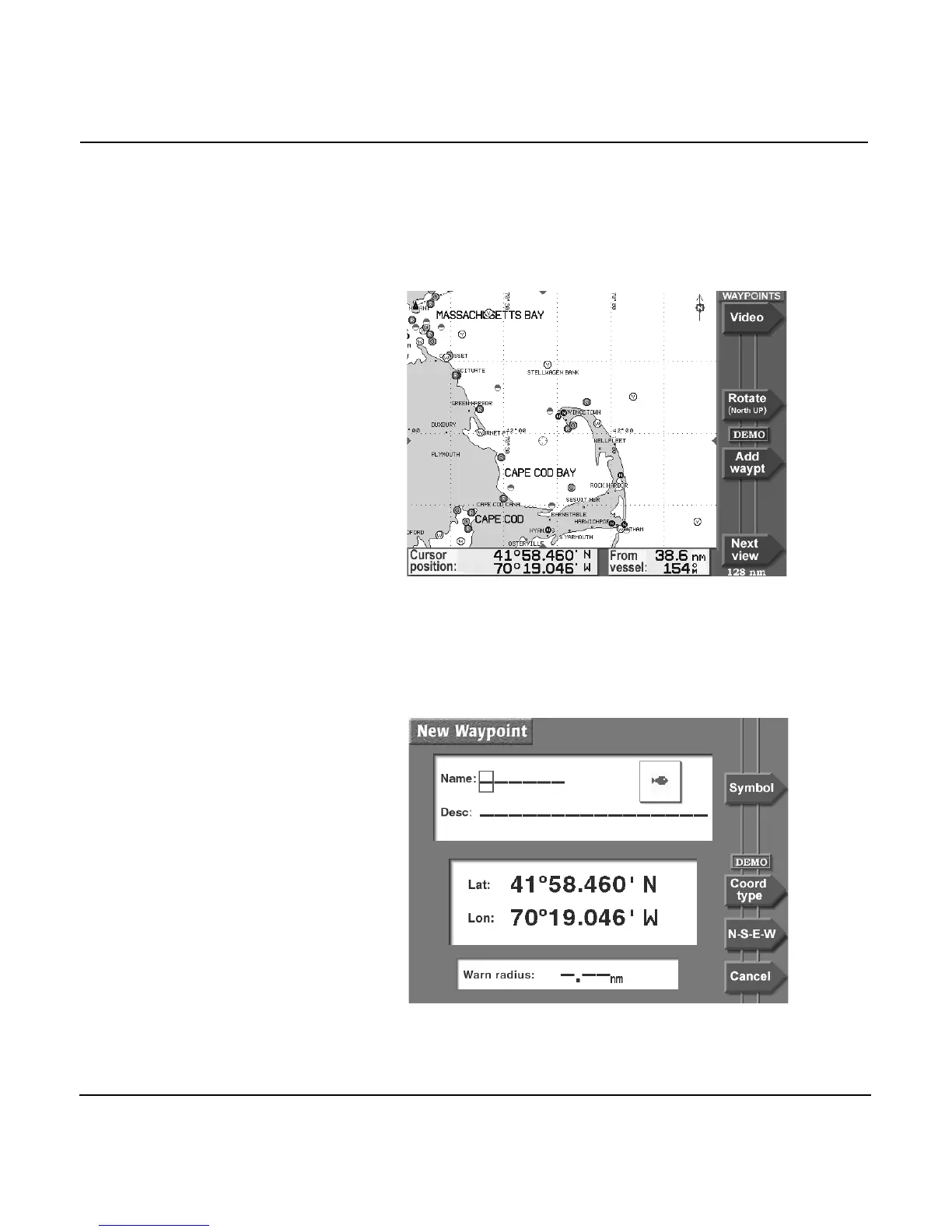2. Press the WAYPOINTS menu key. You may have to press