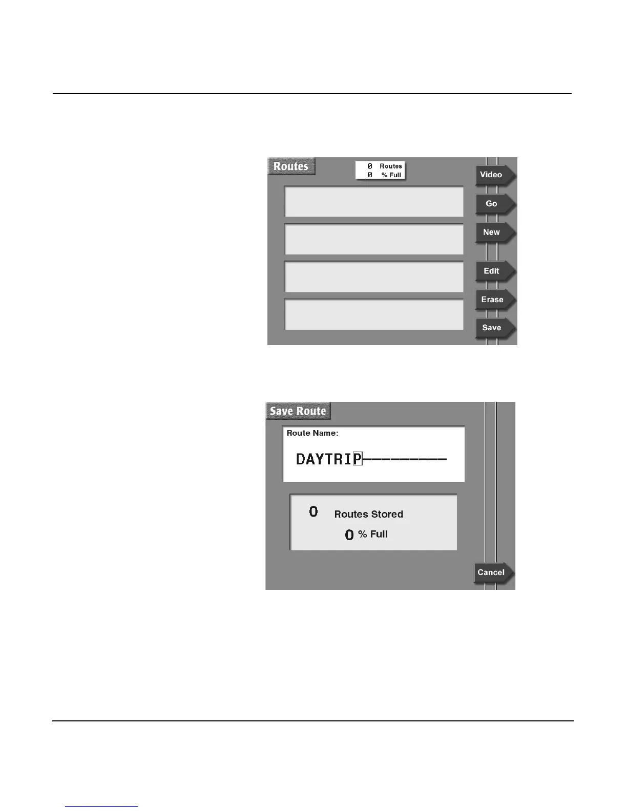 ROUTES menu key to display the ROUTES screen:
