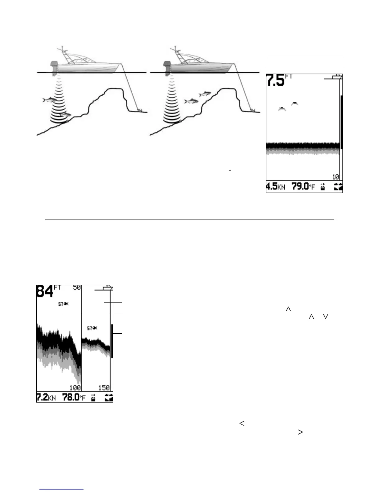 (such as fish or features close to the bottom) in