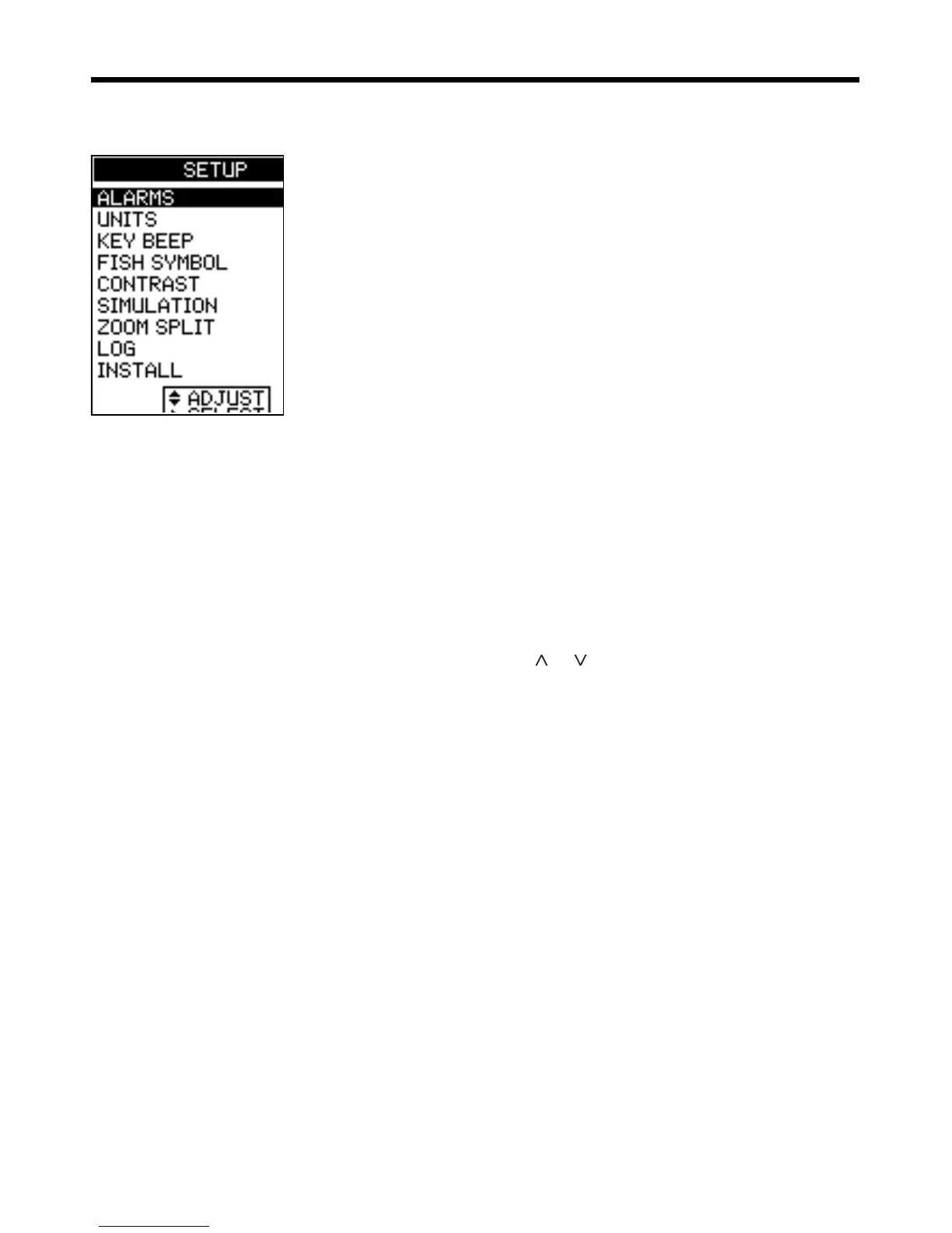 Select MAIN MENU - SETUP to display the SETUP
