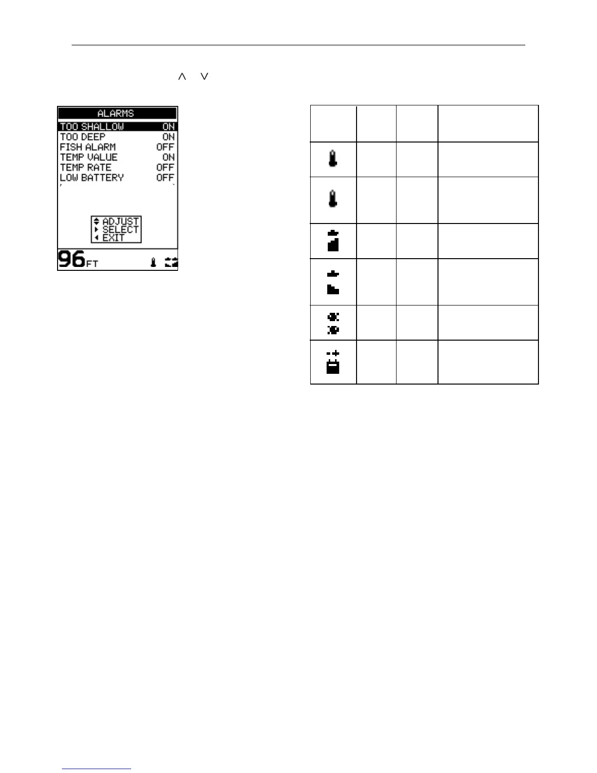 The TOO SHALLOW, TOO DEEP and LOW BATTERY