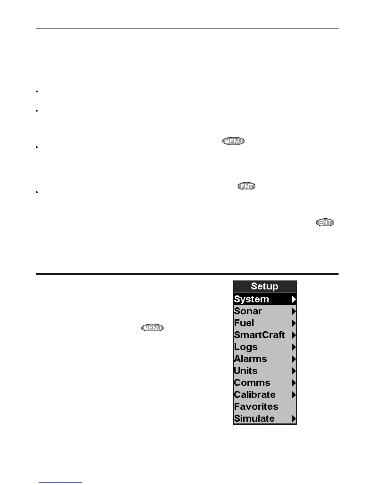 To go to a setup option menu, press