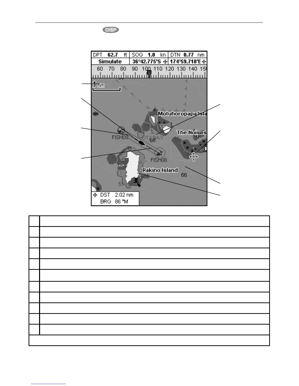 F Boat course and CDI lines (see Appendix C, CDI). The boat is going to the waypoint called FISH06