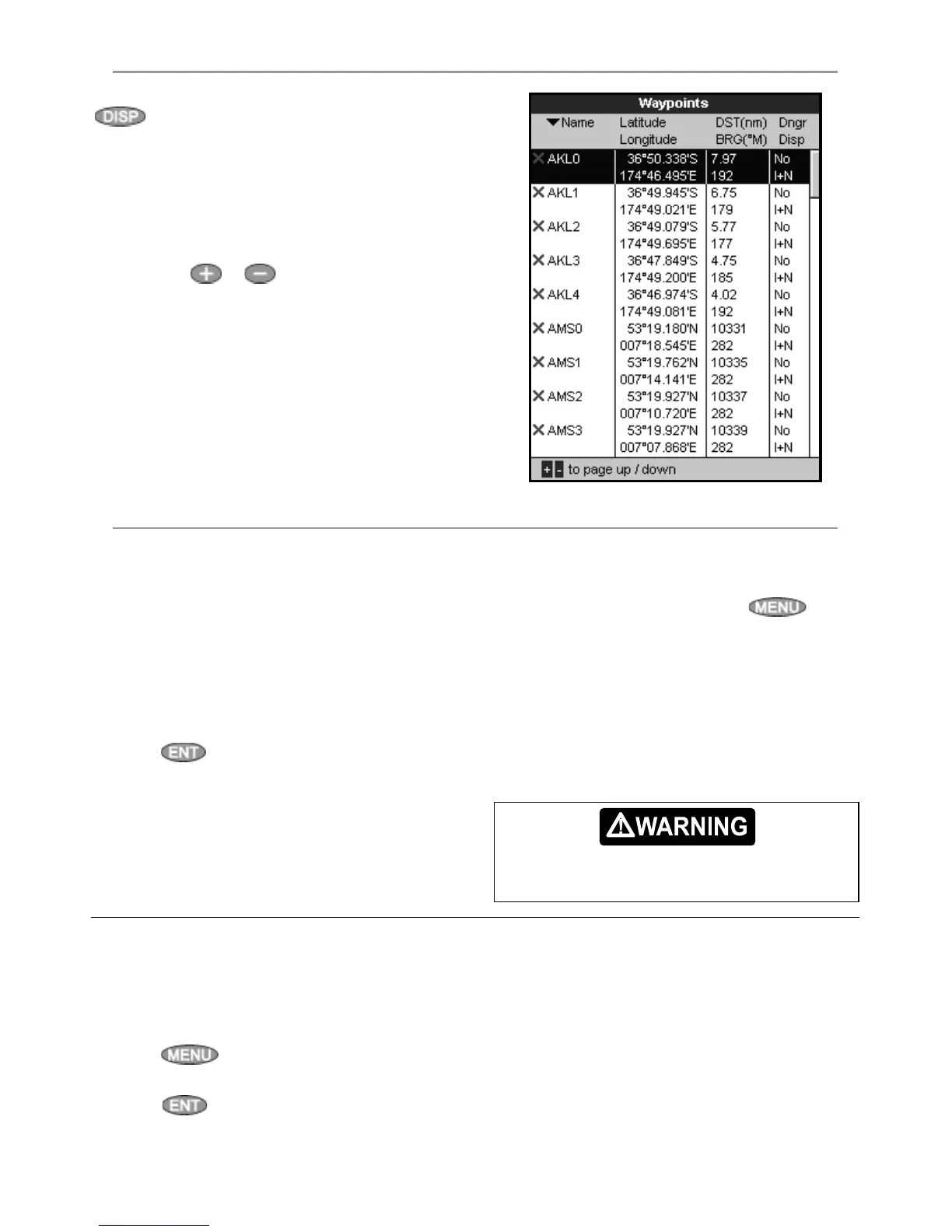 1 In the waypoints display, press
