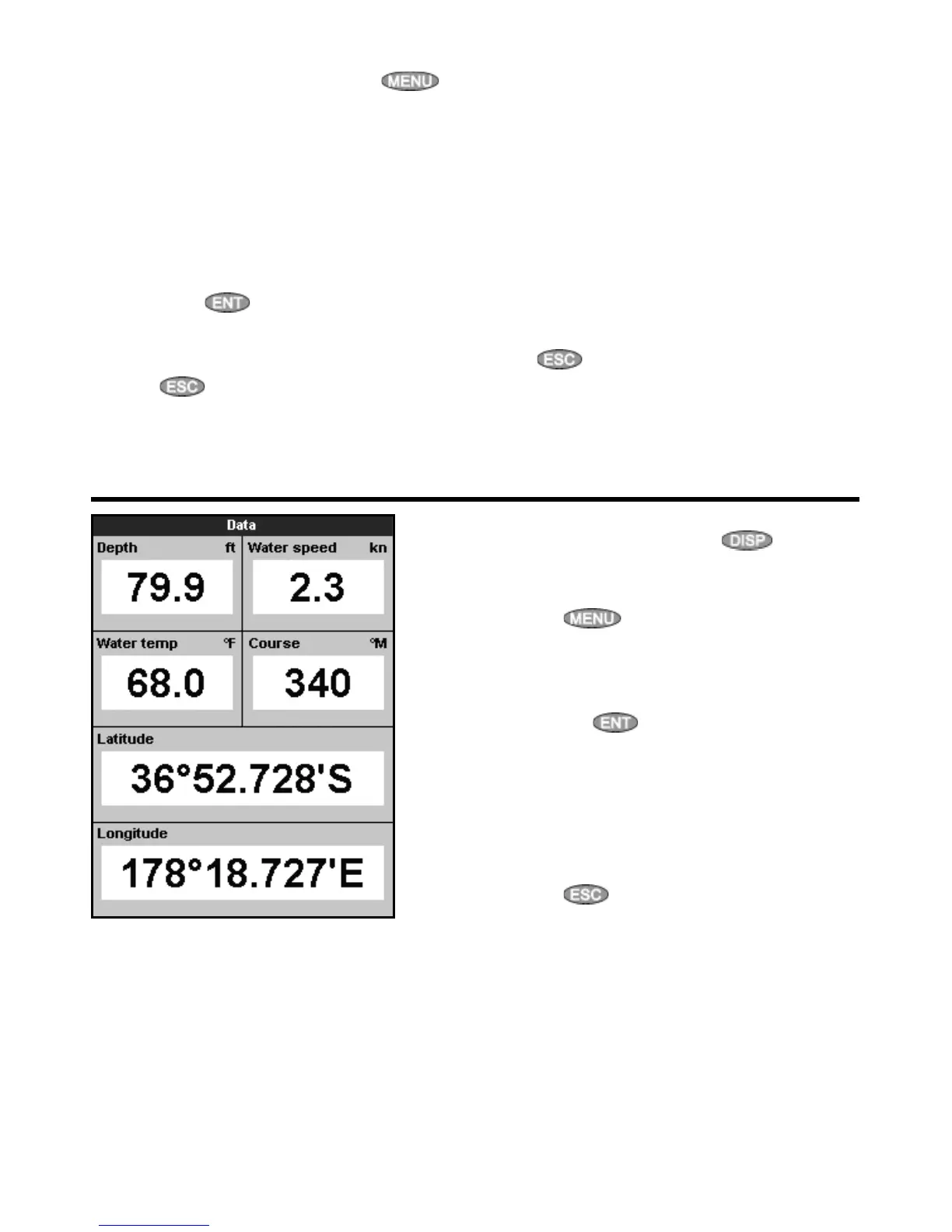 To go to the data display, press , select