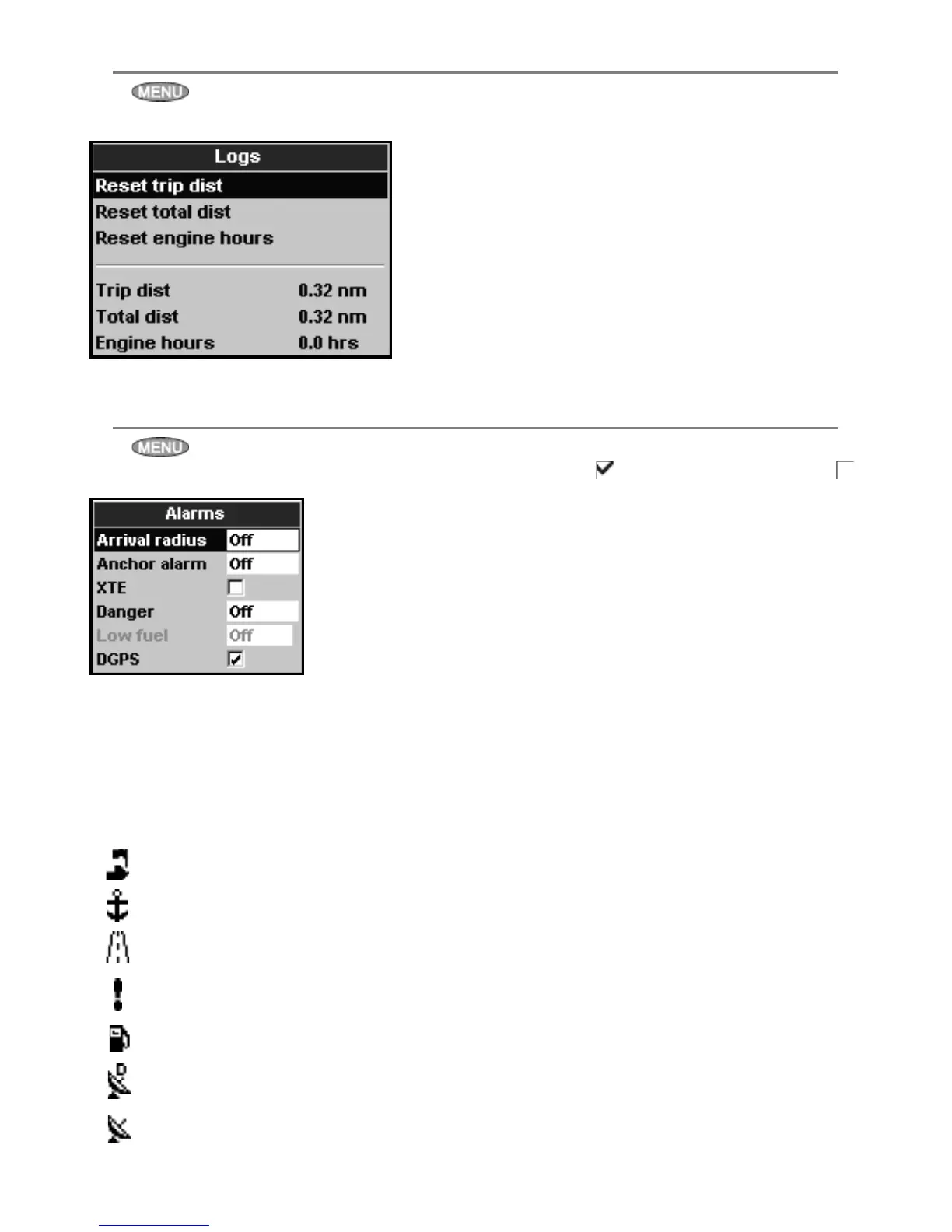 Low fuel Low fuel fuel remaining equals the alarm trigger value; on a multi-tank