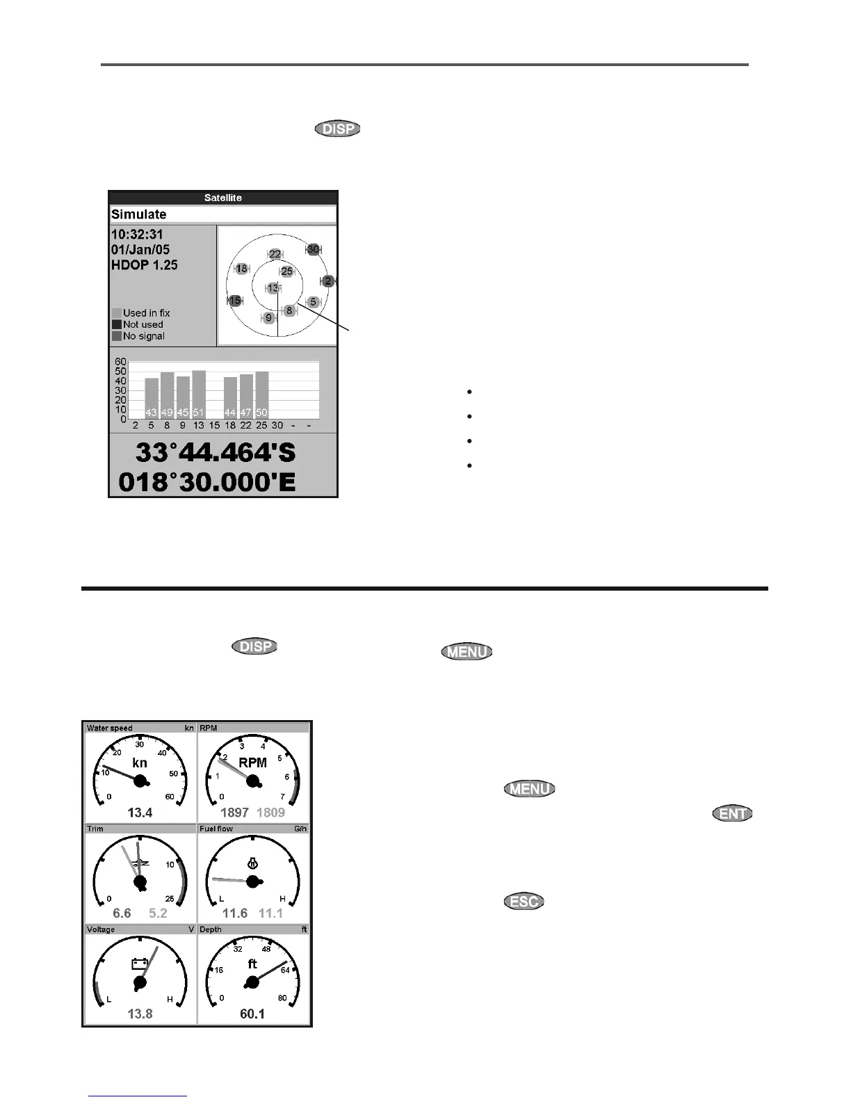 water speed, as analog gauges. To select the