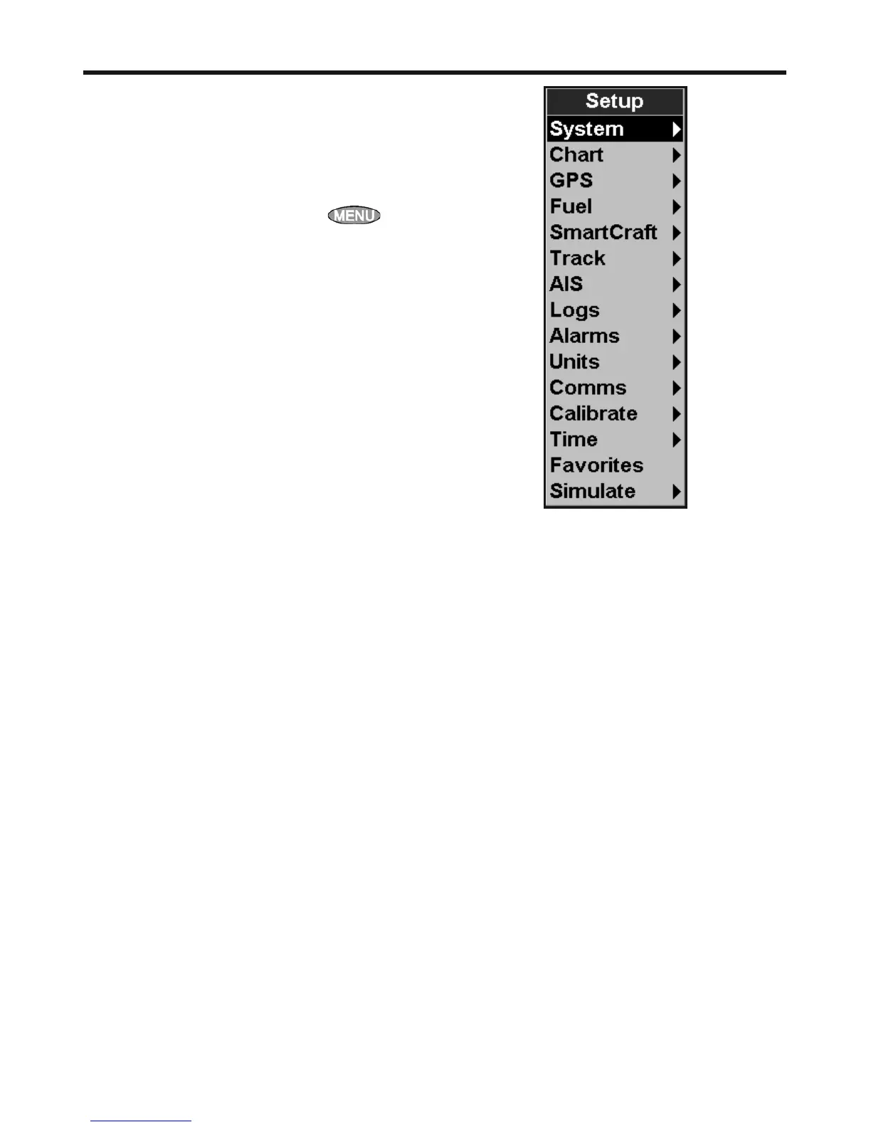 To go to a setup option menu, press