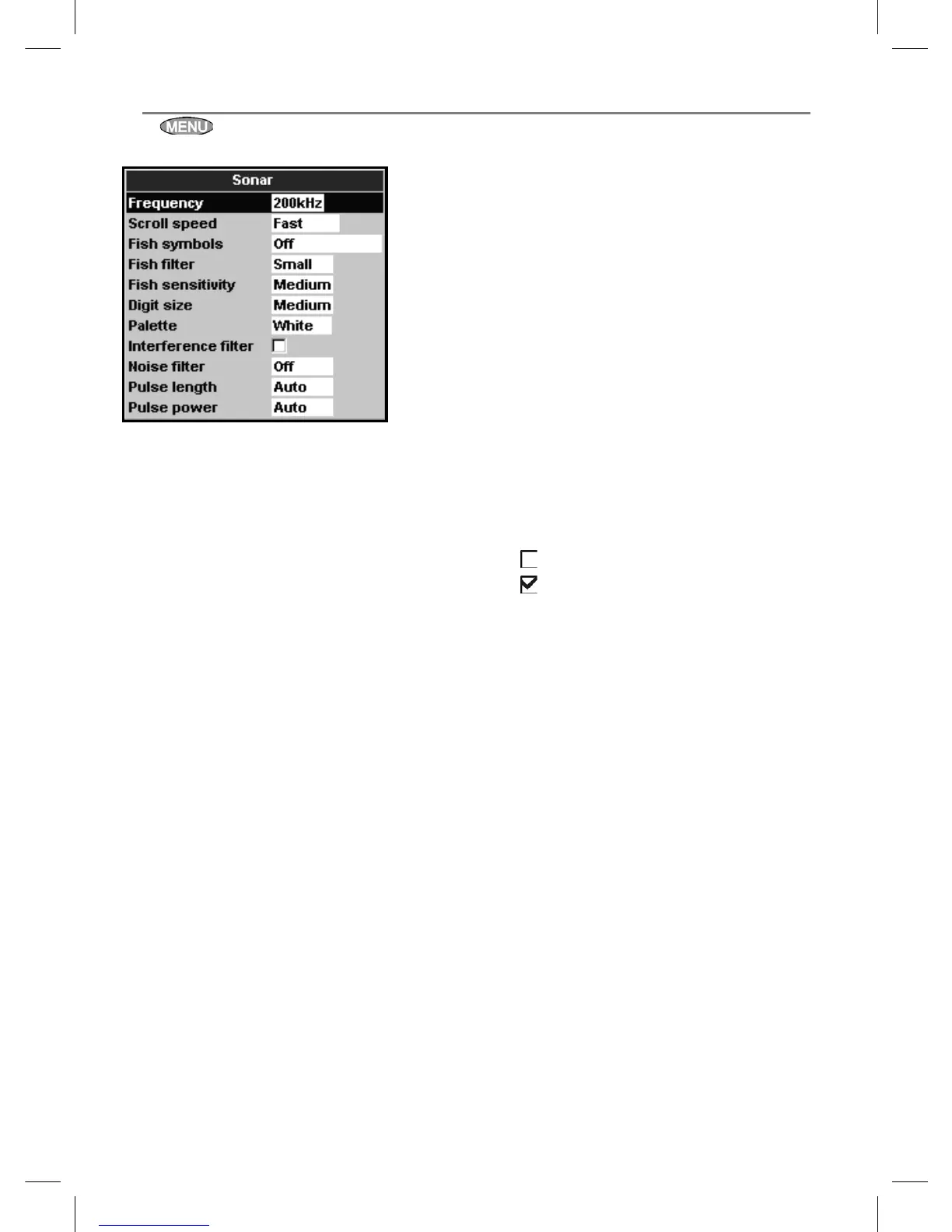 menu is displayed, then select Sonar: