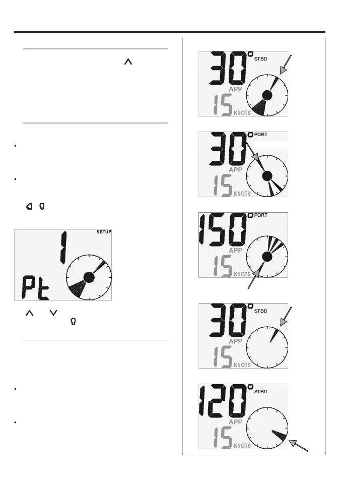 scheinbarer (APP) Windrichtung, Taste drücken.