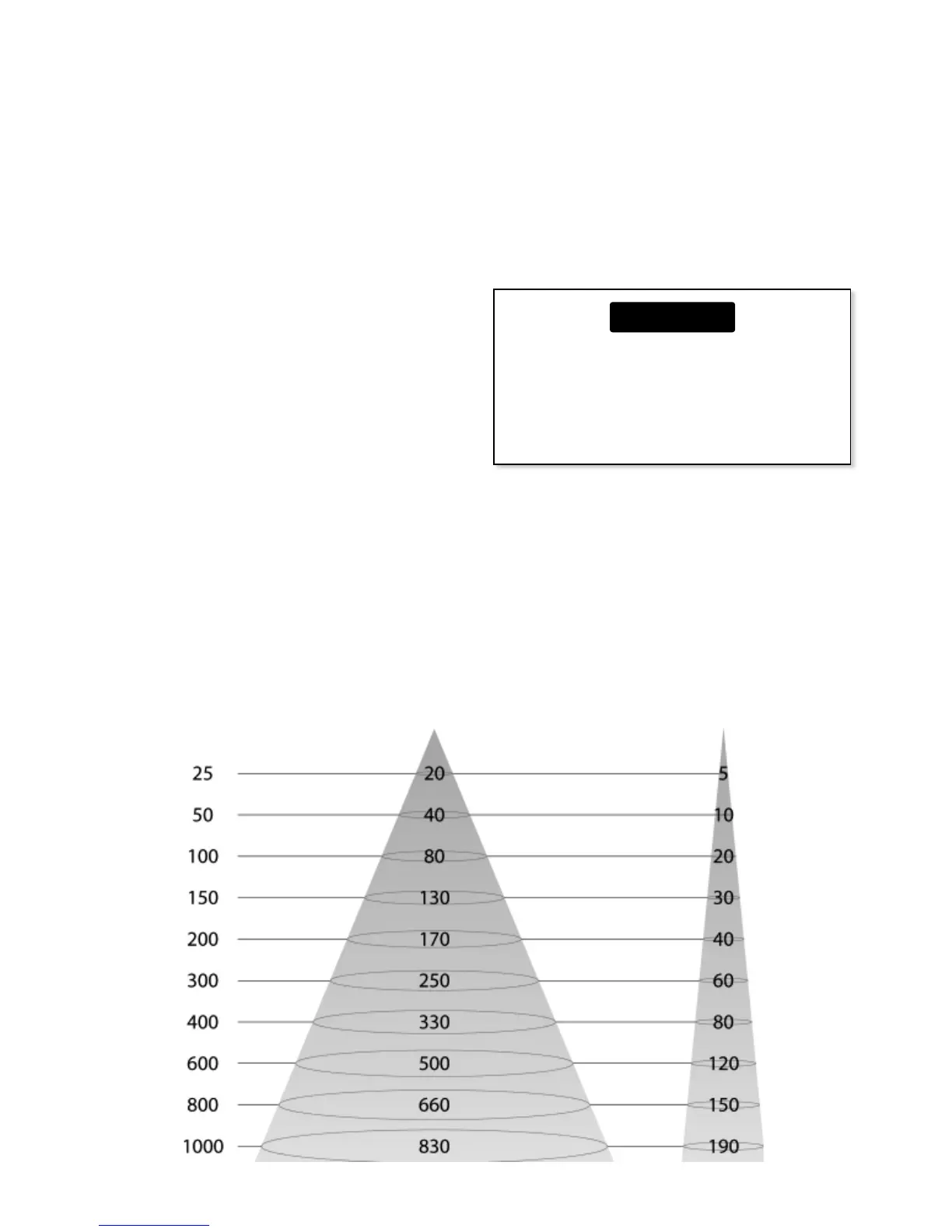 Water Depth ft/m Cone width at 50 kHz Cone width at 200 kHz