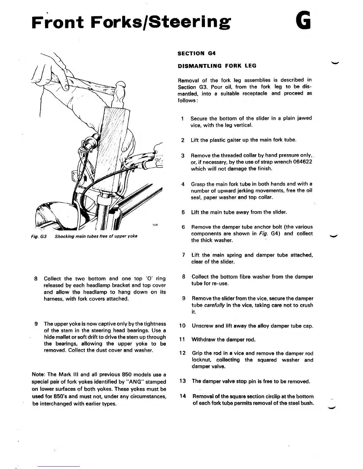 Norton Triumph 850 Commando - SECTION G4 DISMANTLING FORK LEG