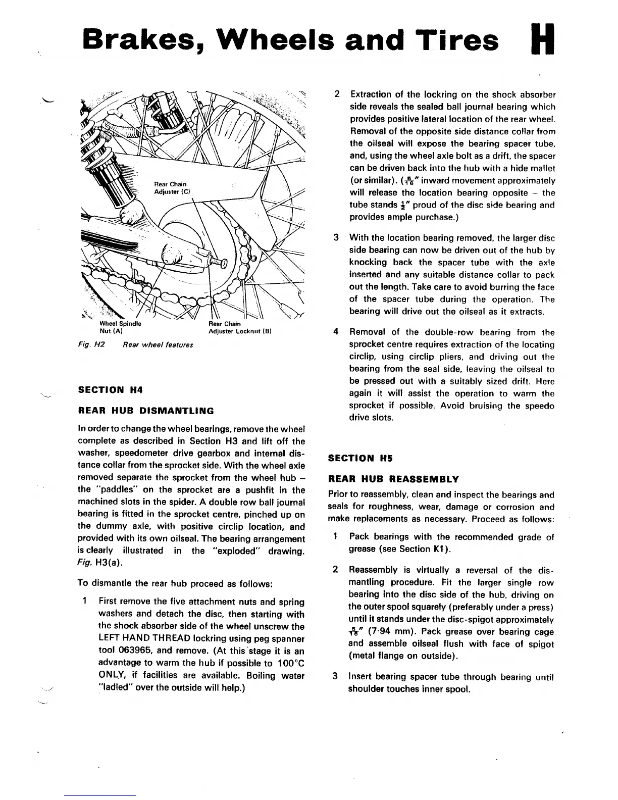 Norton Triumph 850 Commando - SECTION H4 REAR HUB DISMANTLING; SECTION H5 REAR HUB REASSEMBLY