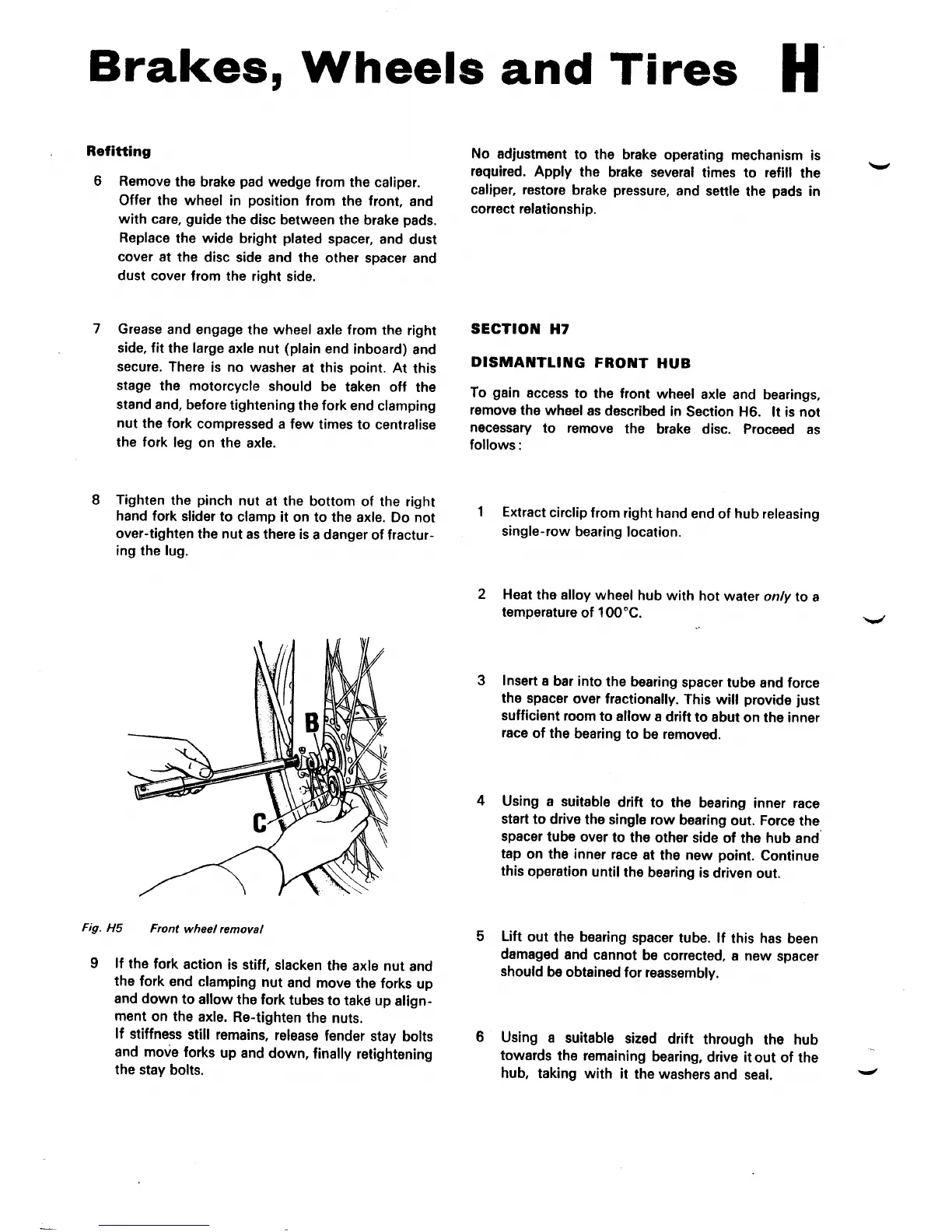 Norton Triumph 850 Commando - SECTION H7 DISMANTLING FRONT HUB