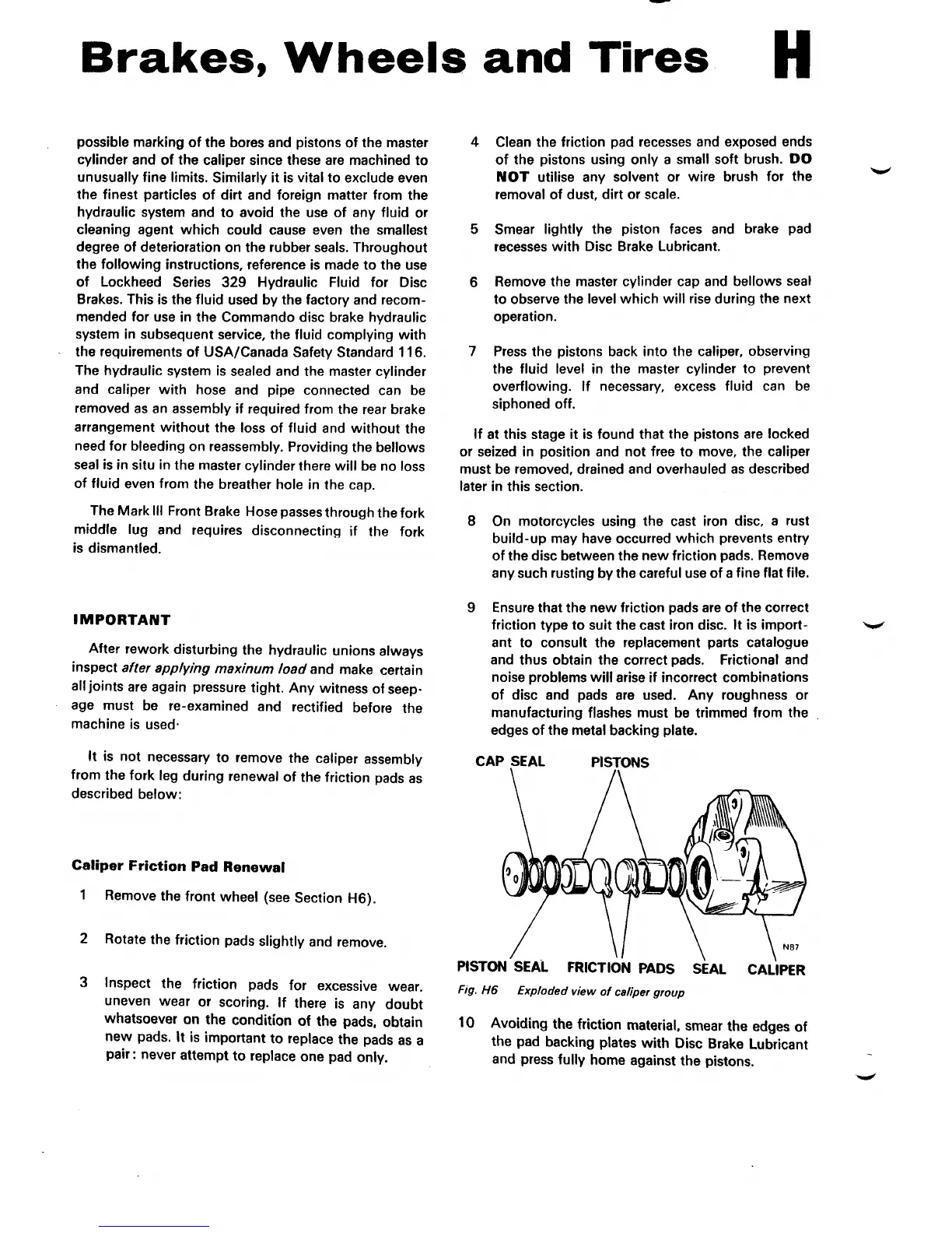 Norton Triumph 850 Commando - SECTION H12 CALIPER FRONT PAD RENEWAL