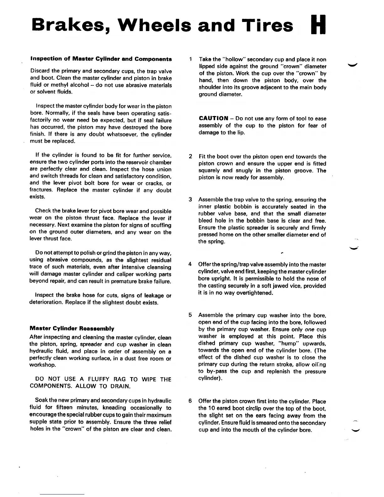 Norton Triumph 850 Commando - SECTION H17 MASTER CYLINDER REASSEMBLY