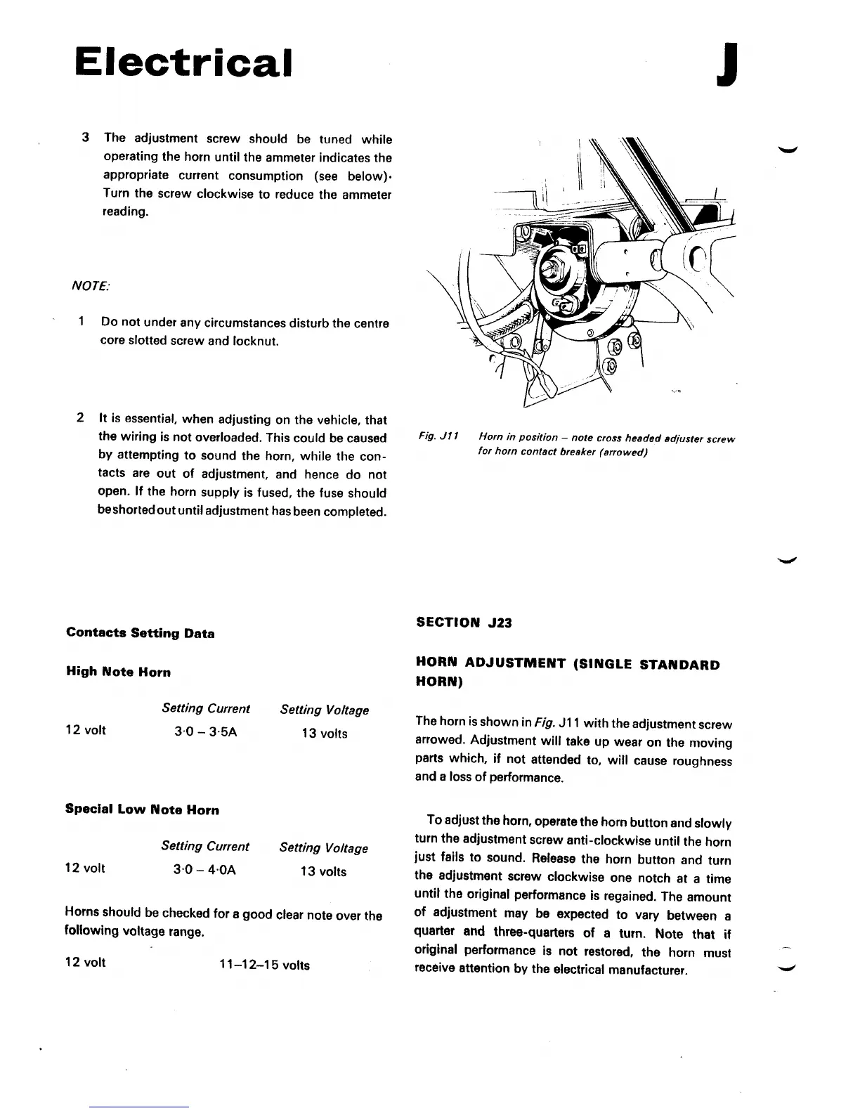 Norton Triumph 850 Commando - SECTION J23 HORN ADJUSTMENT (SINGLE STANDARD HORN)