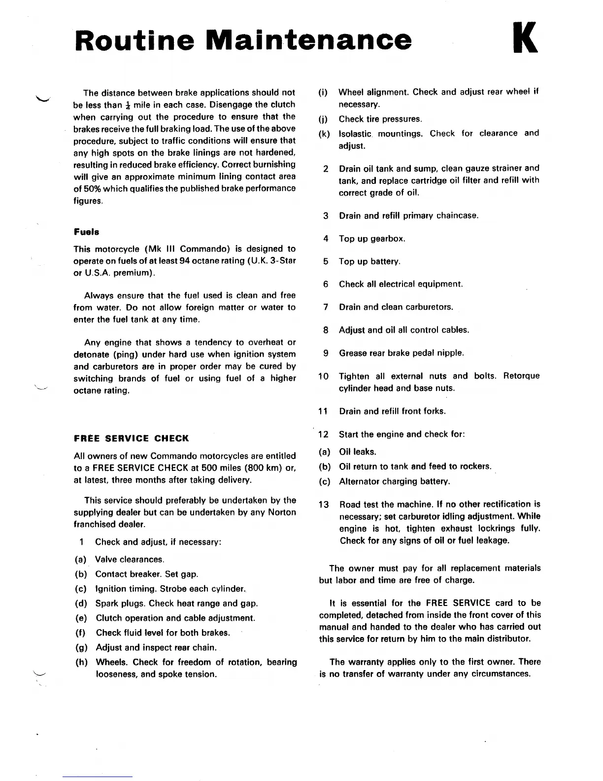 Norton Triumph 850 Commando - Fuels; FREE SERVICE CHECK