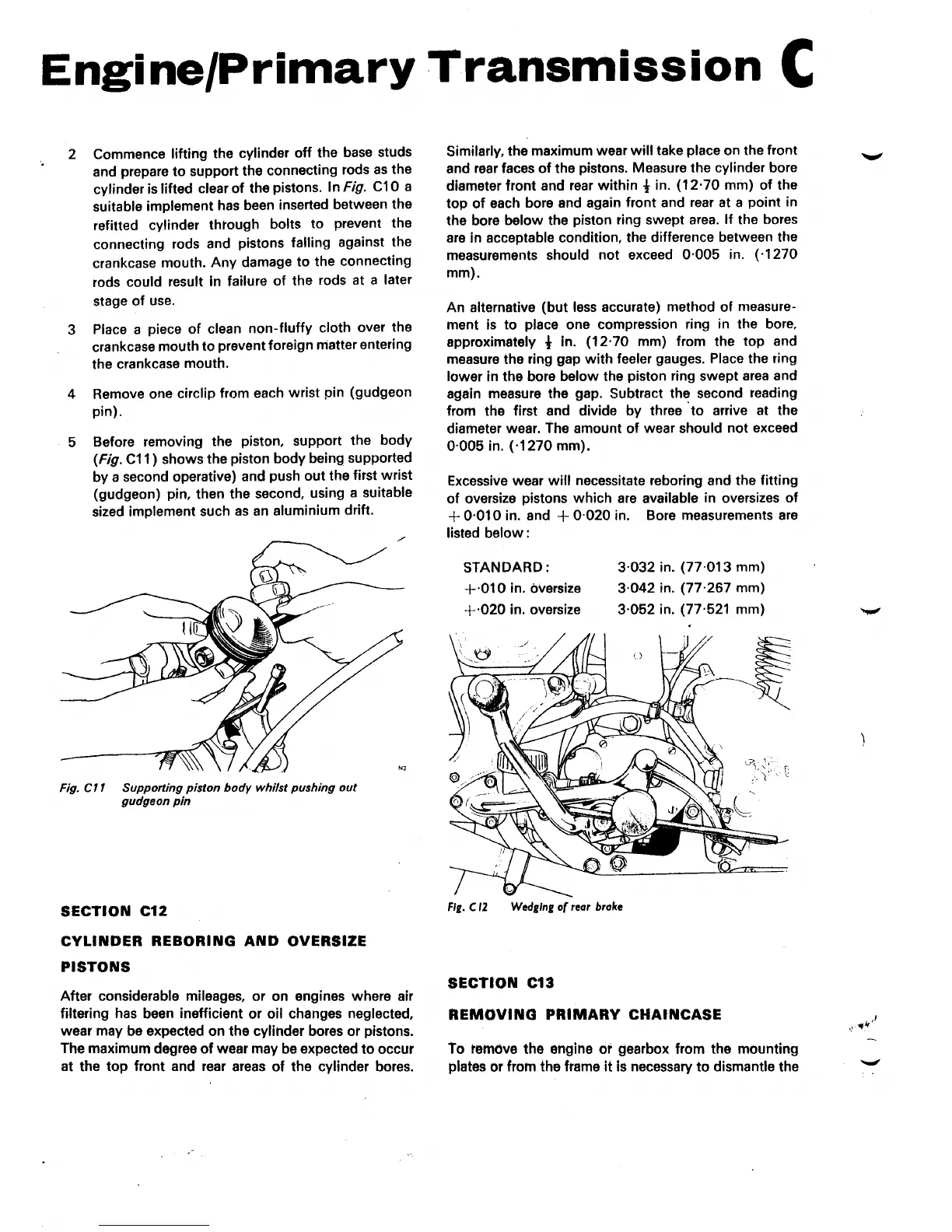 Norton Triumph 850 Commando - SECTION C12 CYLINDER REBORING AND OVERSIZE PISTONS; SECTION C13 REMOVING PRIMARY CHAINCASE