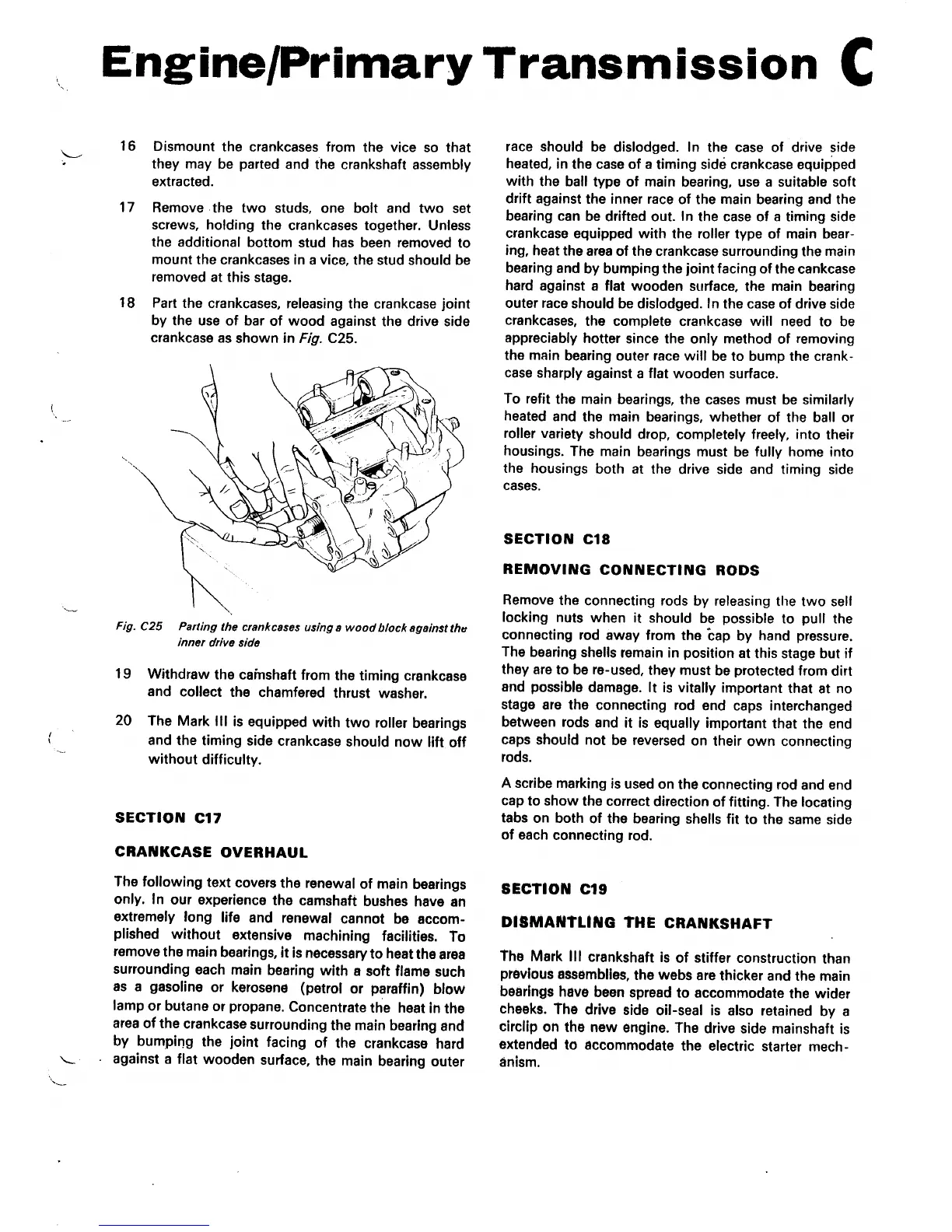 Norton Triumph 850 Commando - SECTION C17 CRANKCASE OVERHAUL; SECTION C18 REMOVING CONNECTING RODS; SECTION C19 DISMANTLING THE CRANKSHAFT