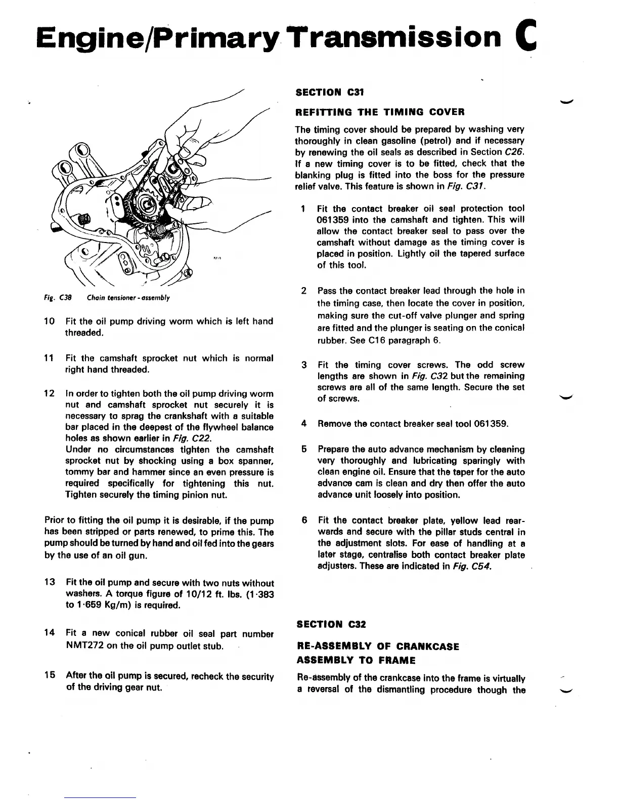 Norton Triumph 850 Commando - SECTION C31 REFITTING THE TIMING COVER; SECTION C32 RE-ASSEMBLY OF CRANKCASE ASSEMBLY TO FRAME