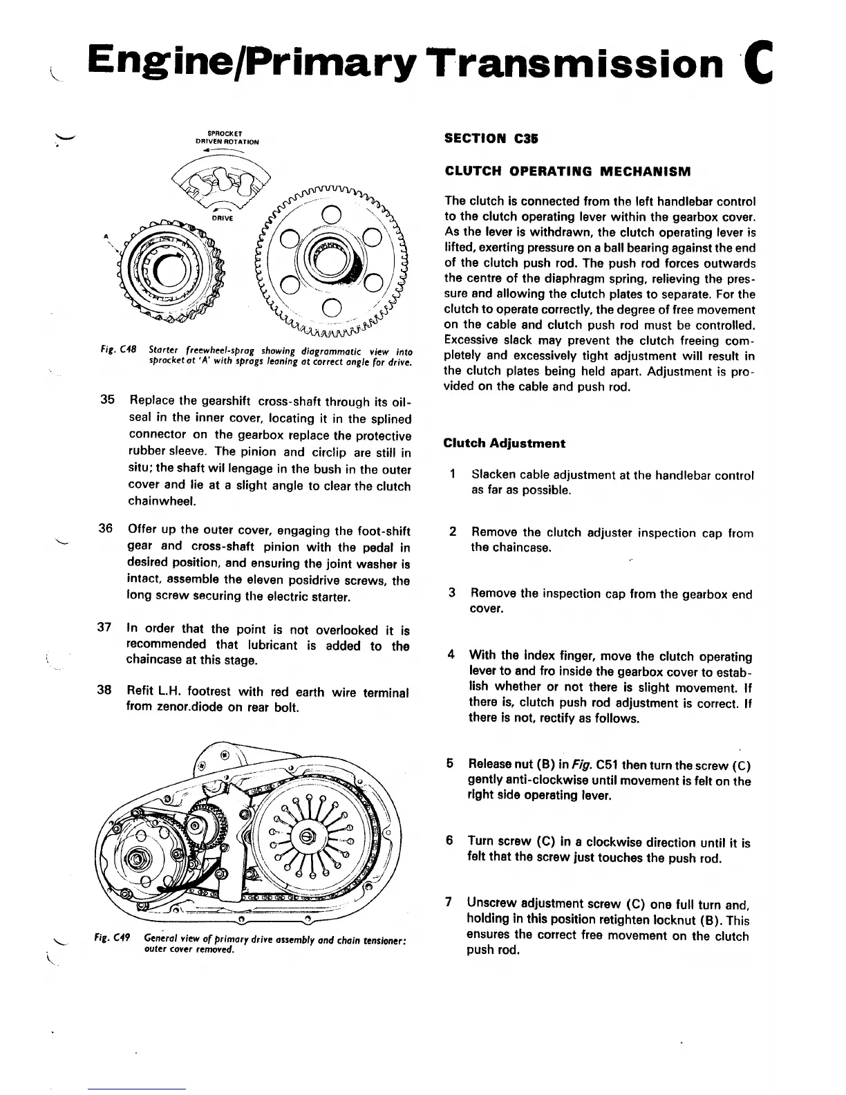 Norton Triumph 850 Commando - SECTION C35 CLUTCH OPERATING MECHANISM