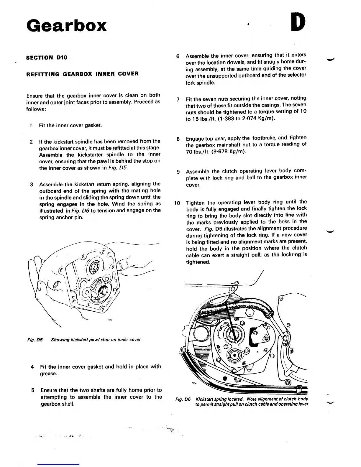 Norton Triumph 850 Commando - SECTION D10 REFITTING GEARBOX INNER COVER