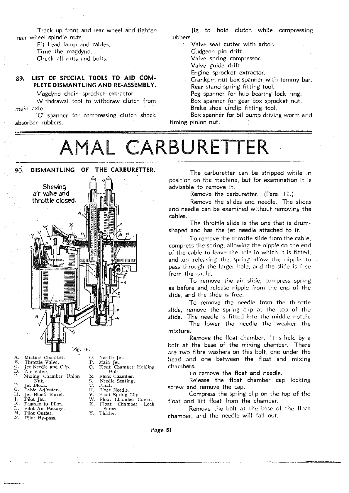 Norton 16H - Amal Carburetter; Special Tools to Aid Complete Dismantling and Re-Assembly; Dismantling of the Carburetter