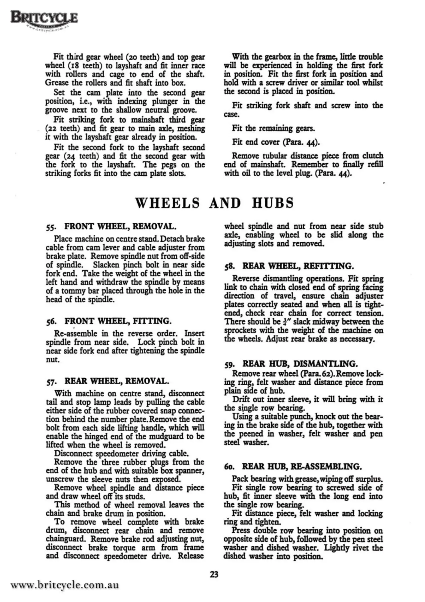 wheel (18 teeth) to layshaft and fit inner race